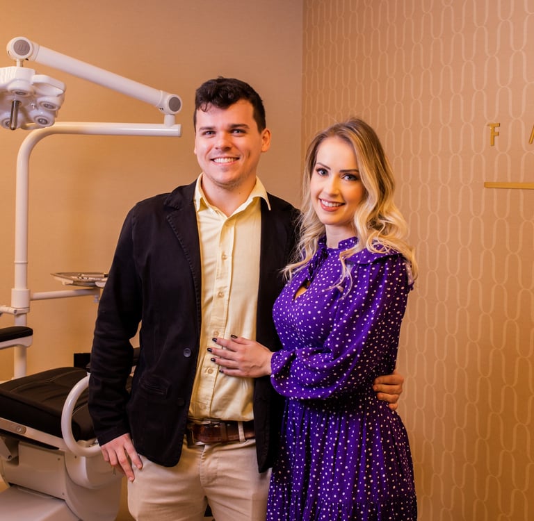 Dr. Pedro Vinícius e Dra. Mariela são os responsáveis por cuidar do seu novo sorriso!